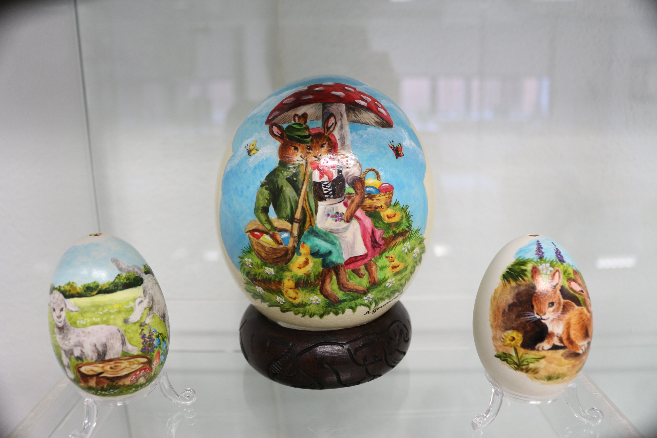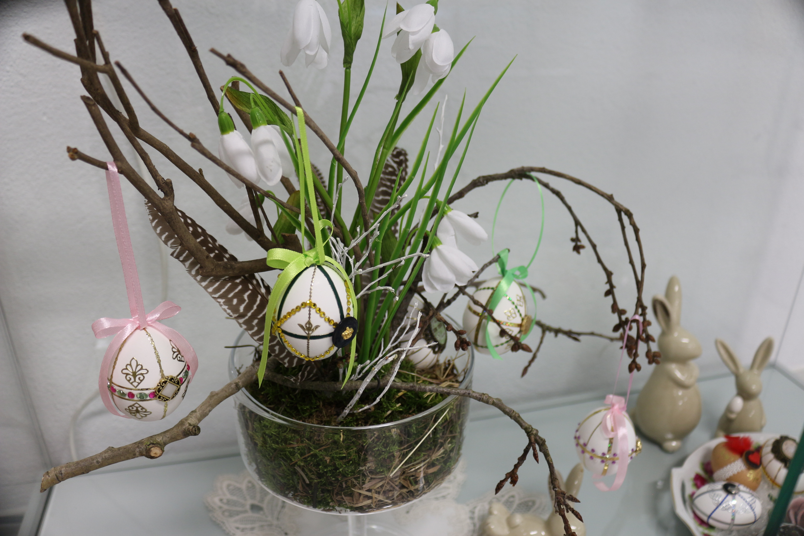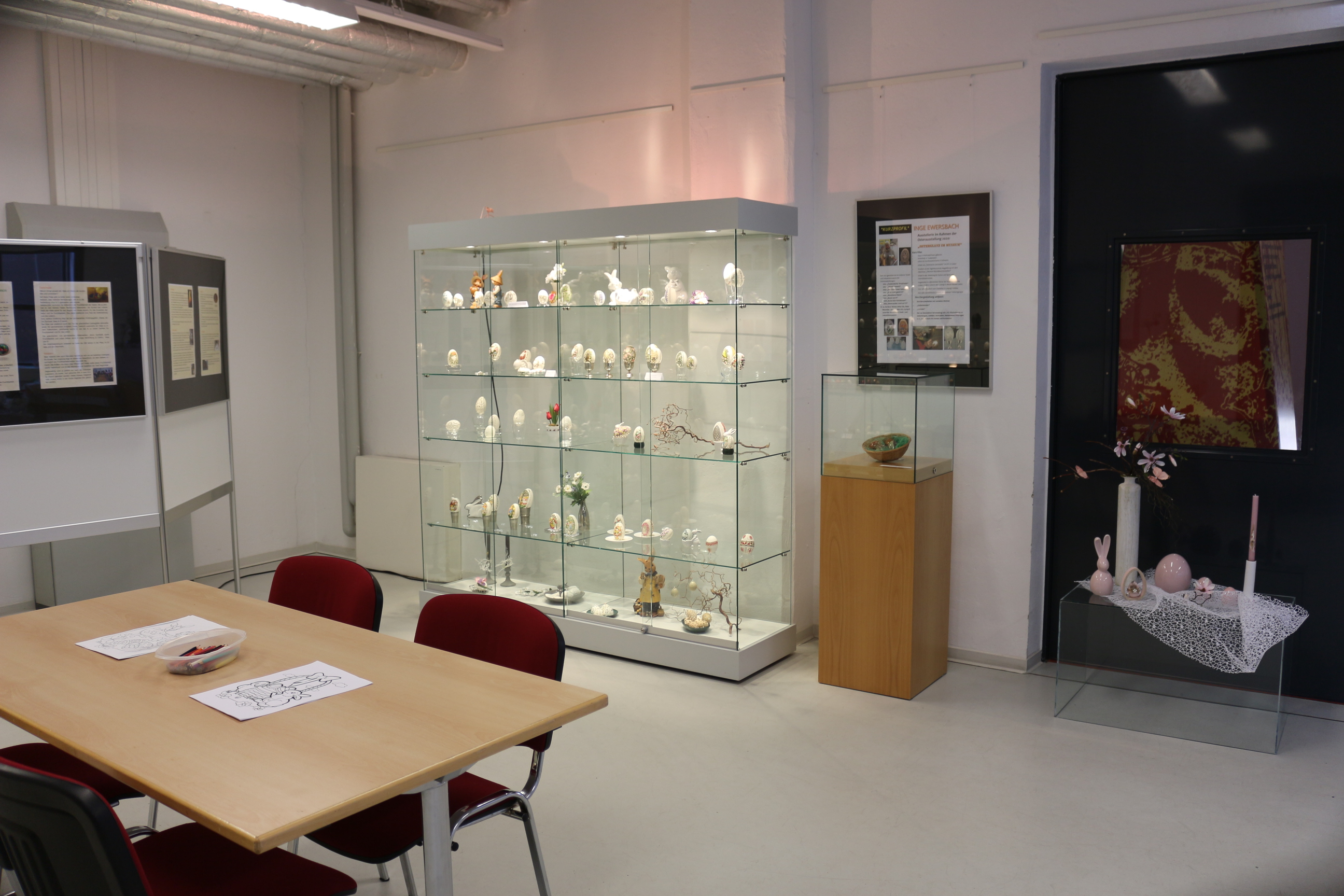 Aufgrund der aktuellen Situation kann die diesjährige Osterausstellung unter dem Titel "Osterglanz im Museum" derzeit leider nicht für Besucher*innen öffnen. Dabei waren die Aussteller und Künstler das ganze Jahr fleißig, um neue Kunstwerke zu erschaffen. Fertig positioniert und dekoriert warten die kleinen Kunstwerke seit nunmehr zwei Wochen, um von kleinen und großen Besucher*innen bestaunt zu werden. Damit die zahlreichen filigranen Kunstwerke und Osterdekorationen nicht im Verborgenen bleiben, haben wir uns dazu entschlossen hier auf unserer Museumswebseite einen virtuellen Einblick in die diesjährige Osterausstellung zu bieten.