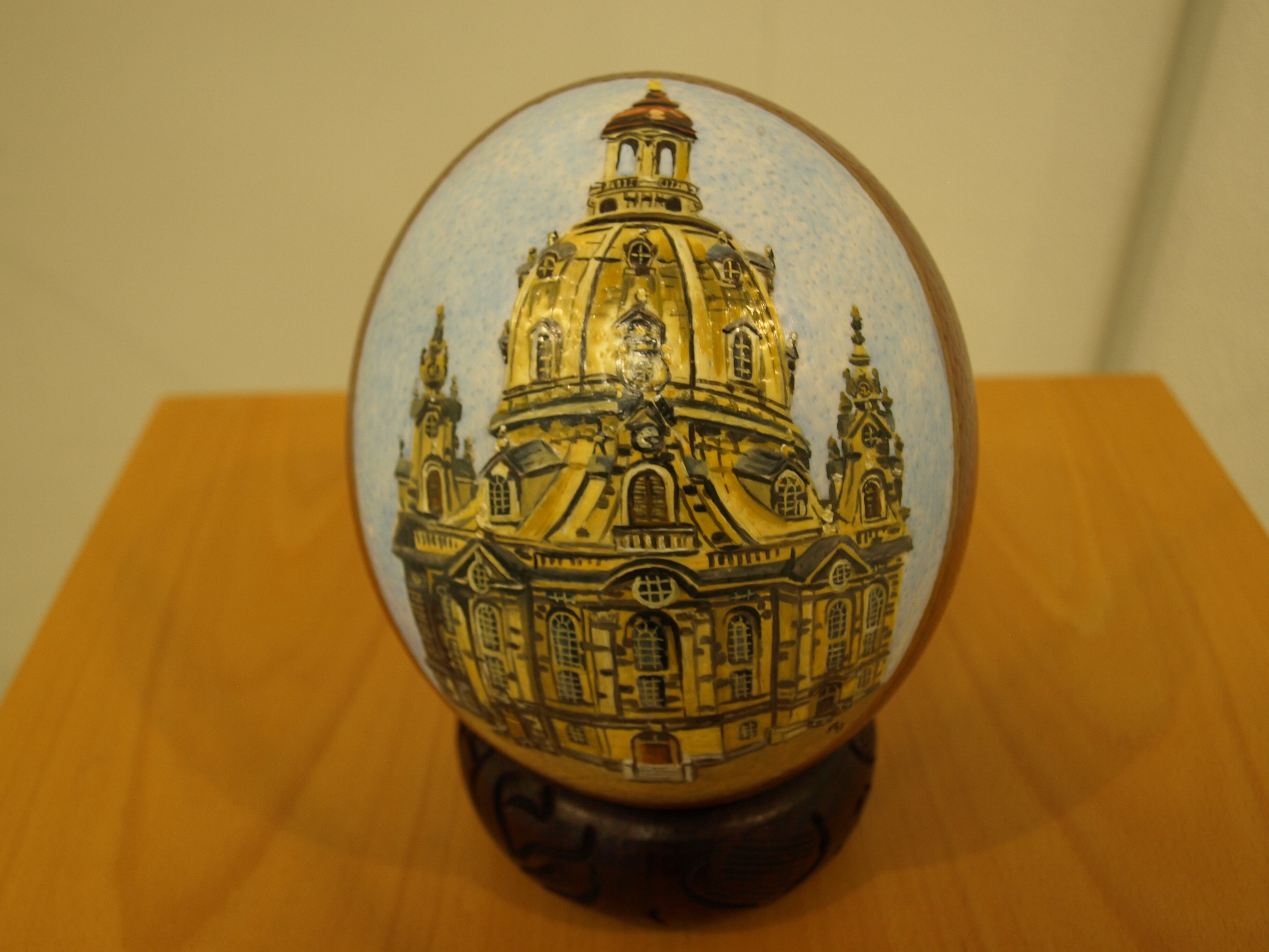 Straußenei (Motiv: Dresdener Frauenkirche) Nanduei Simone Hertrich ist ebenfalls noch eine unbekannte Künstlerin bei uns im Museum. Mit viel Fantasie und Kreativität gestaltet sie Perlhuhn- und Hühnereier im sogenannten "Vintage-Stil", die den Anschein erwecken, schon hundert Jahre alt zu sein. Diese Art der Gestaltung mittels Perlen und Bändern ist zum allerersten Mal im Stadt- und Industriemuseum zu sehen. Durch den "Vintage-Stil" bekommt jedes Ei seine eigene nostalgische Note und wird zu einem einzigartigen Kunstwerk.